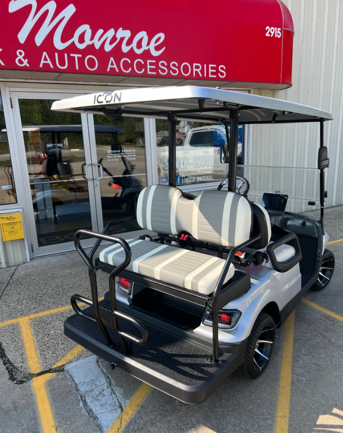 Get ready for a ride like no other with the all-new ICON i40 Golf Cart! This state-of-the-art vehicle is designed for those who appreciate both style and functionality. Featuring a sleek, modern design, the ICON i40 is perfect for cruising the golf course, the neighborhood, or any local event with ease and flair. With seating for up to four passengers, you can bring your friends or family along for the ride. The spacious and comfortable seats ensure everyone enjoys a smooth and relaxing journey, no matter the distance. Whether you’re heading out for a round of golf or simply exploring your community, the ICON i40 offers the perfect blend of comfort and convenience. This brand-new golf cart comes equipped with advanced features that set it apart from the competition. Enjoy the powerful performance and reliable handling that ICON is known for, ensuring you get to your destination safely and efficiently. The robust construction and high-quality materials used in the ICON i40 mean you’re investing in a durable and long-lasting vehicle. The ICON i40 isn’t just about looks and comfort; it’s also packed with practical features. From ample storage compartments to a user-friendly dashboard, every detail has been thoughtfully designed to enhance your driving experience. Plus, with its eco-friendly electric motor, you can enjoy a quiet, emissions-free ride while doing your part for the environment. Experience the new standard in golf carts with the ICON i40. Ready to turn heads and make every journey an enjoyable adventure, this is the perfect vehicle for those who demand the best. Get behind the wheel of the ICON i40 today and discover why it’s the ultimate choice for discerning drivers everywhere.